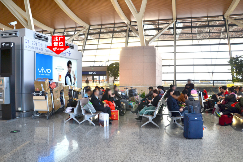 上海浦东国际机场T2航站楼出发层29号出入口旁