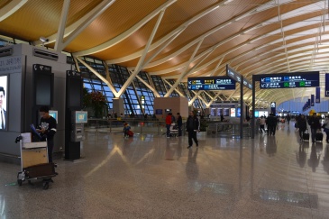 上海浦东国际机场T2航站楼出发层20号出入口旁