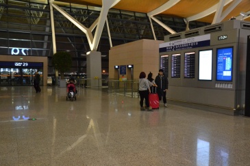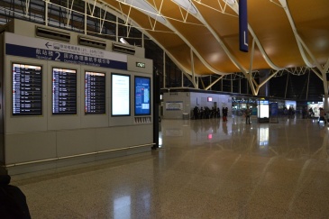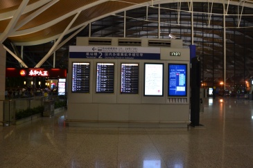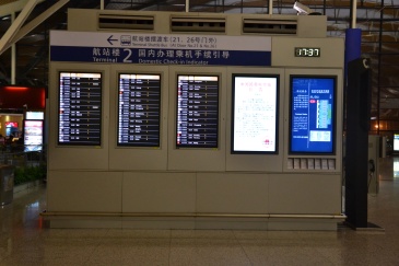 上海浦东国际机场T2航站楼出发层29号出入口旁航班信息显示屏