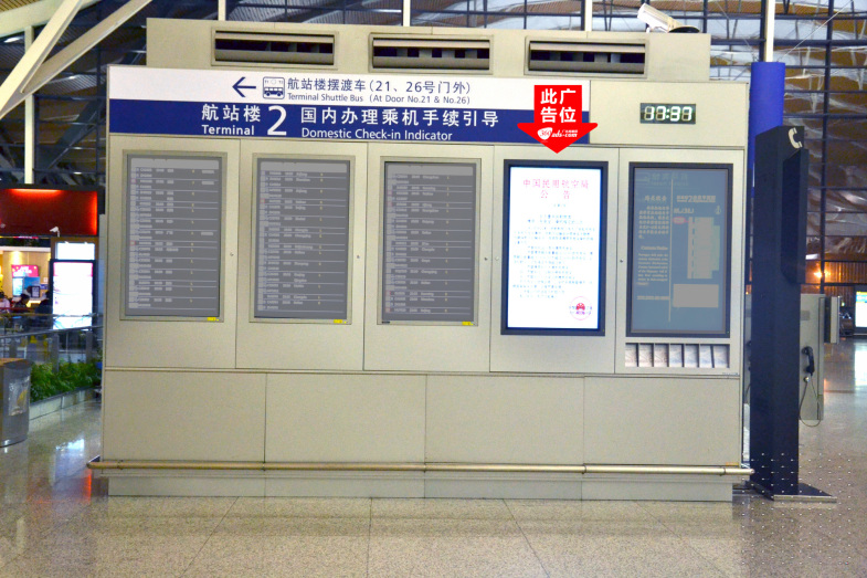 所在地区上海市 媒体地址上海浦东国际机场T2航站楼出发层29号出入口旁航班信息显示屏