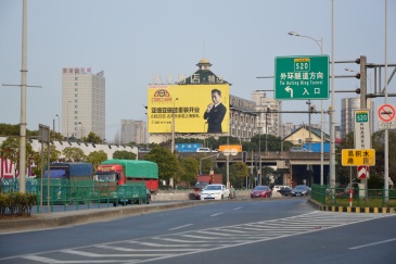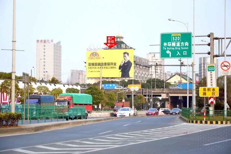 曹安公路与外环高速交汇处桔子酒店墙面大牌[已拆除]